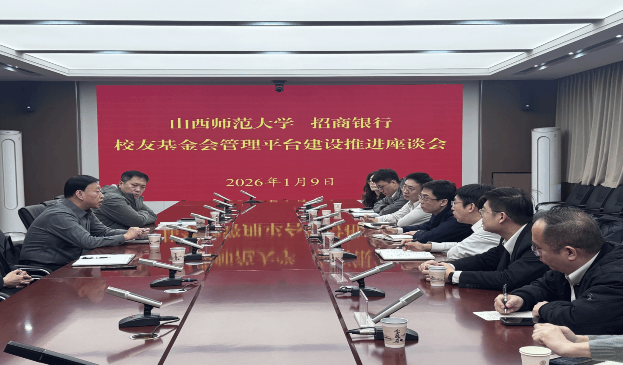 1月9日上午,我中心与招商银行太原体育路支行校友基金会管理平台建设推进座谈会在行政北楼414会议室召开。
